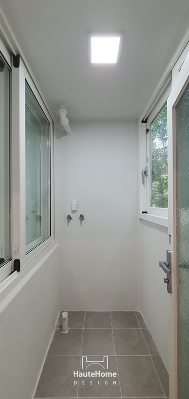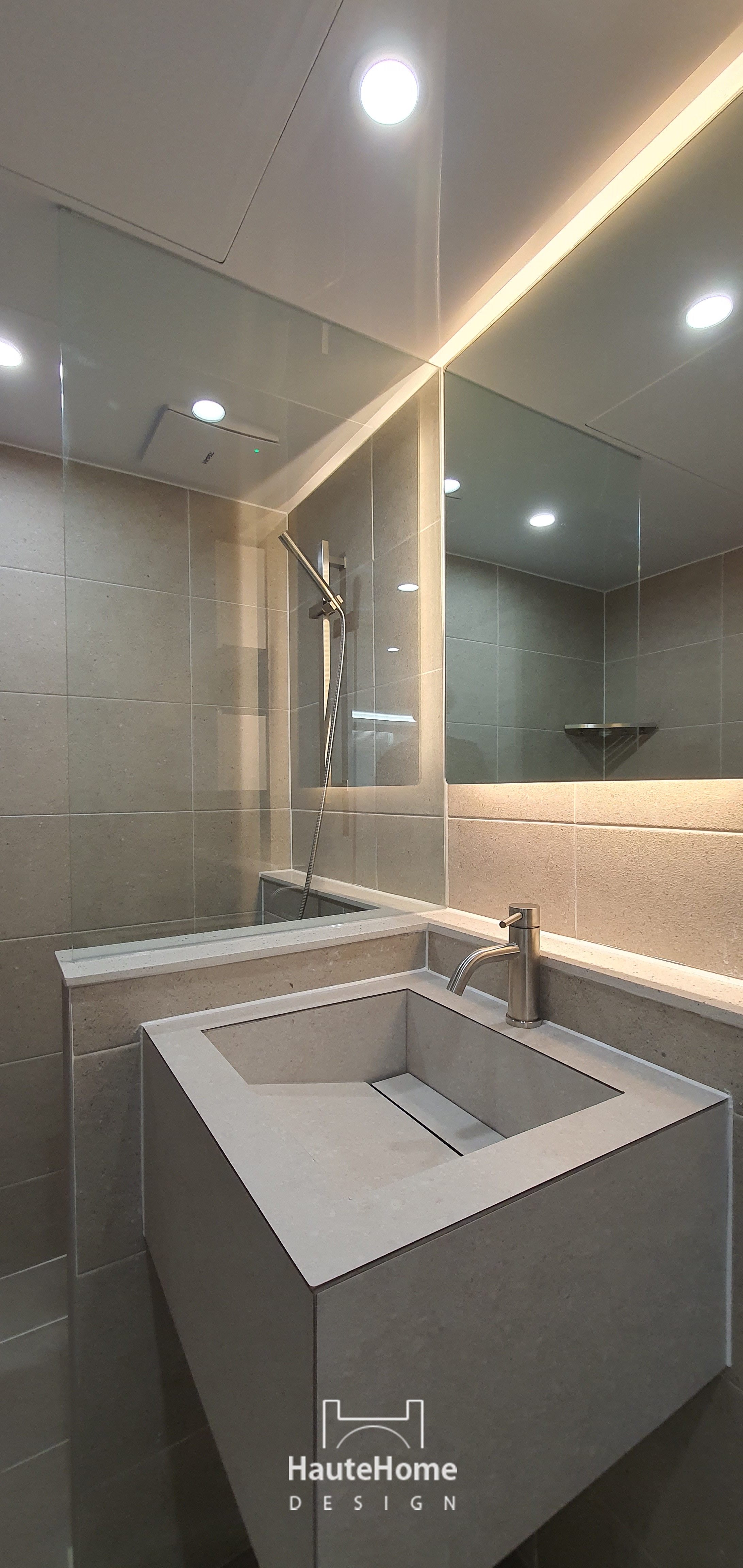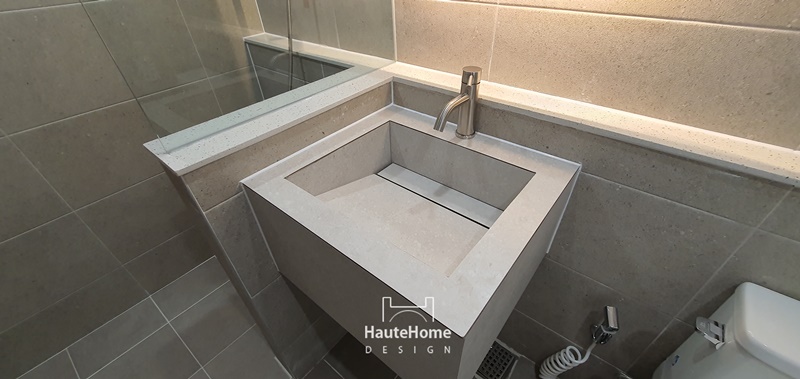 타일 세면대와 조적, 유리 파티션