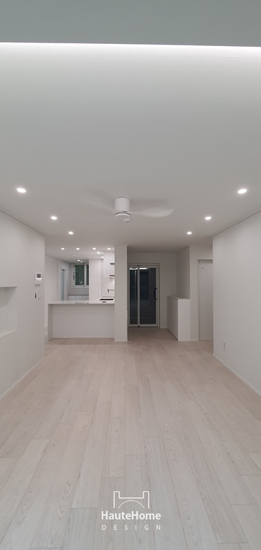 9mm 문선, 2계단 몰딩, 40mm 걸레받이, 12mm 상판으로 슬림하게, 더 슬림하게